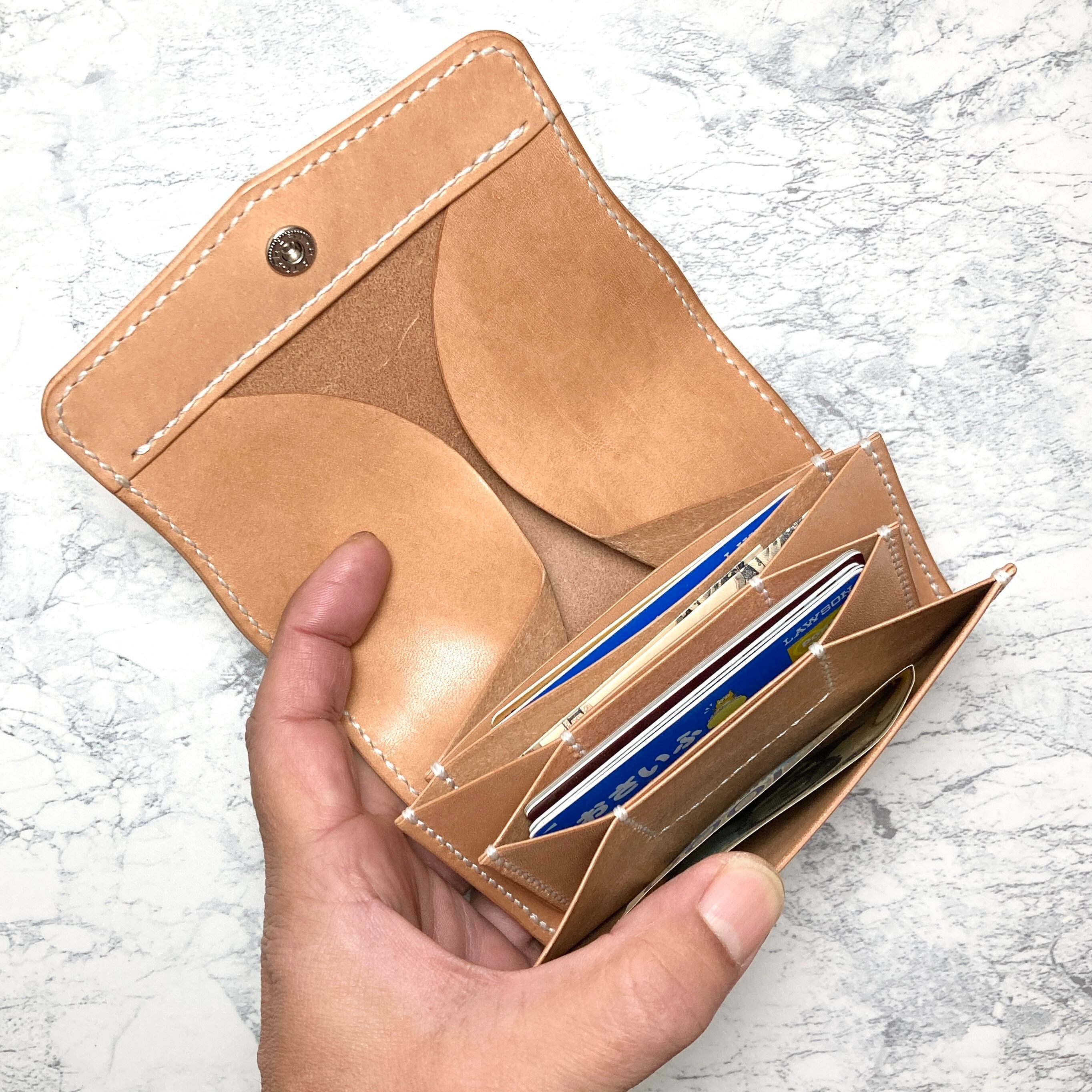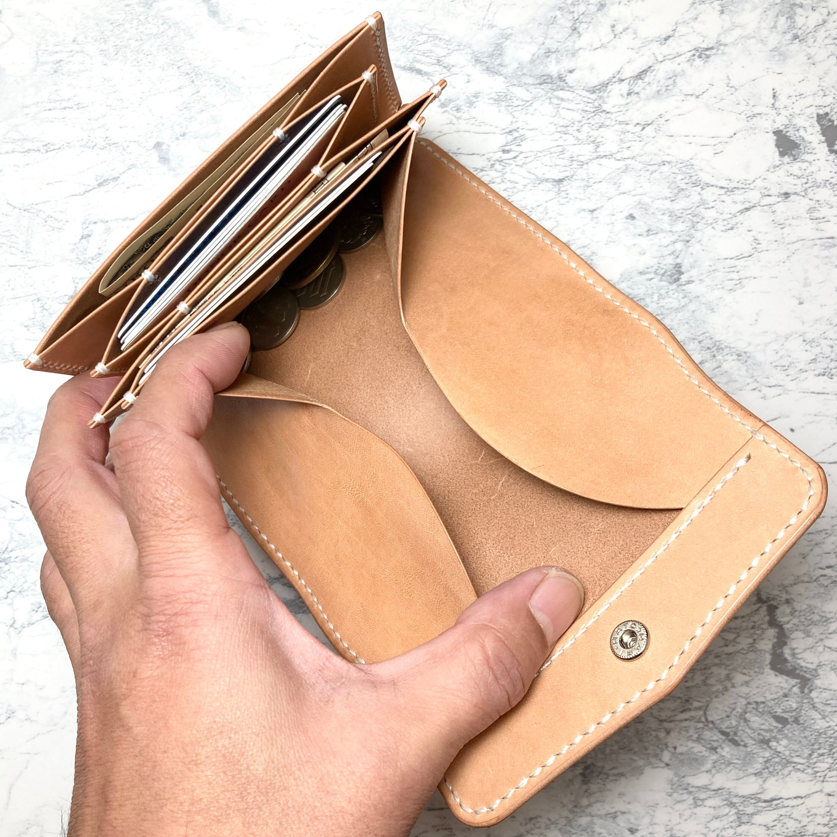 ワンアクションで完結。飴色に育てるコンパクト財布|栃木レザー ナチュラル 本革 二つ折り財布 メンズ レディース