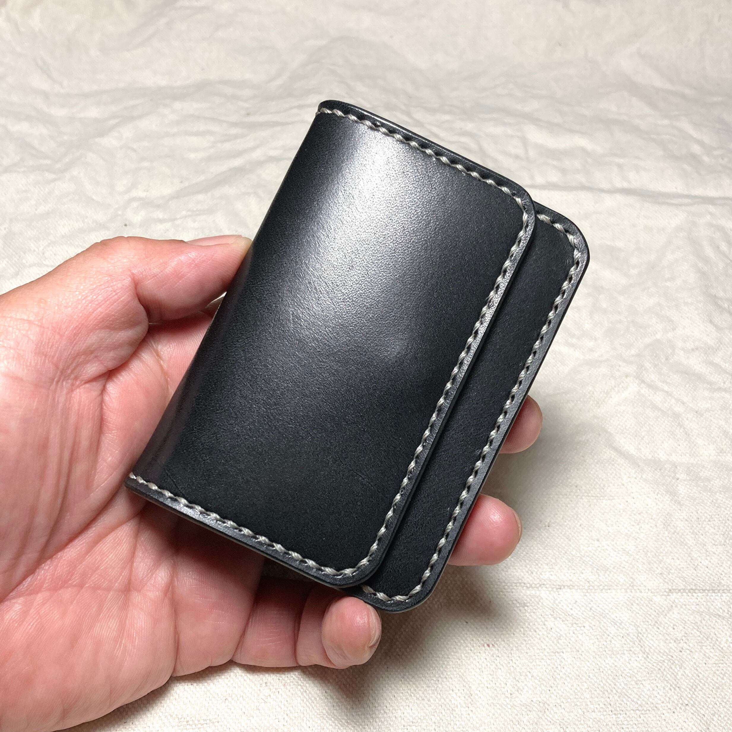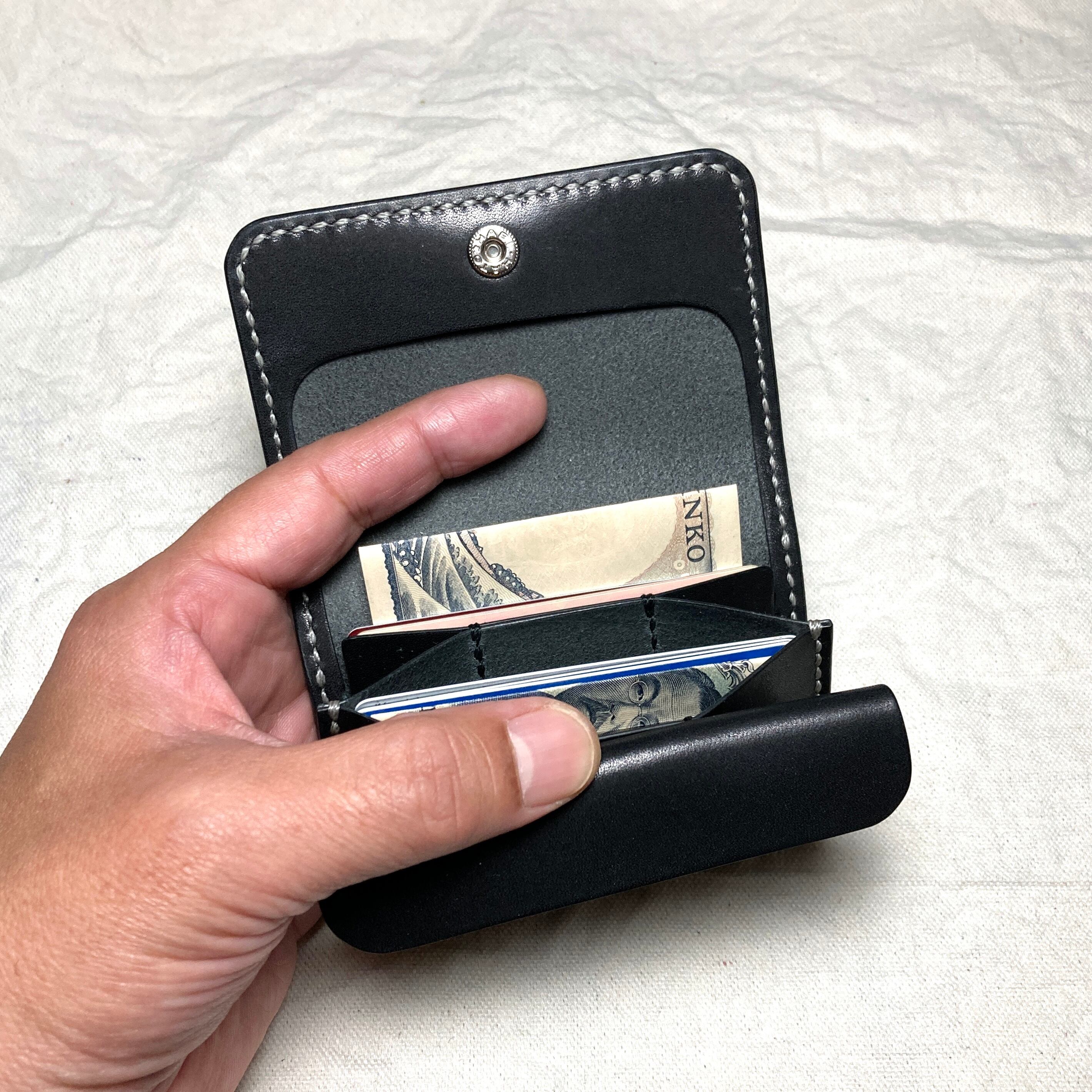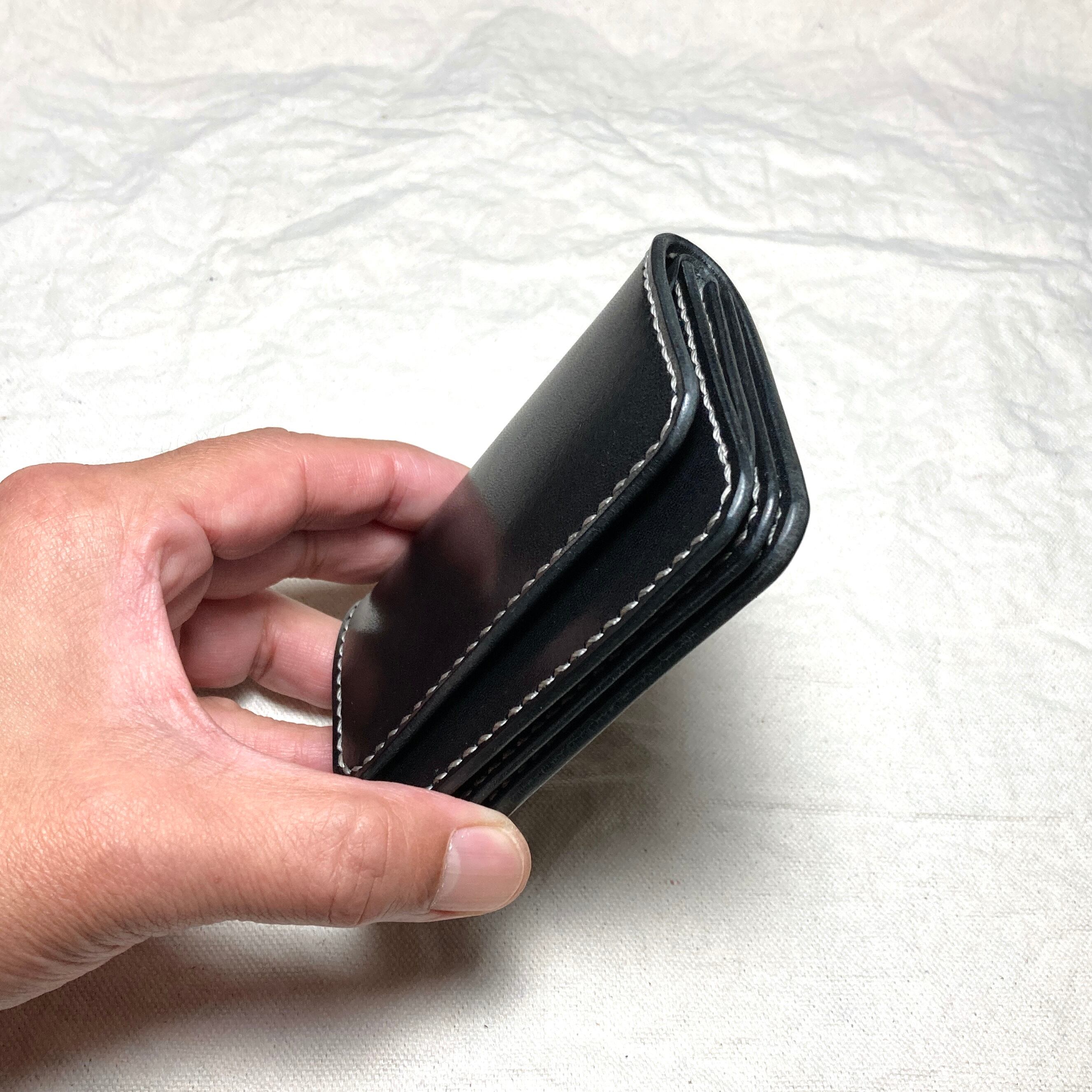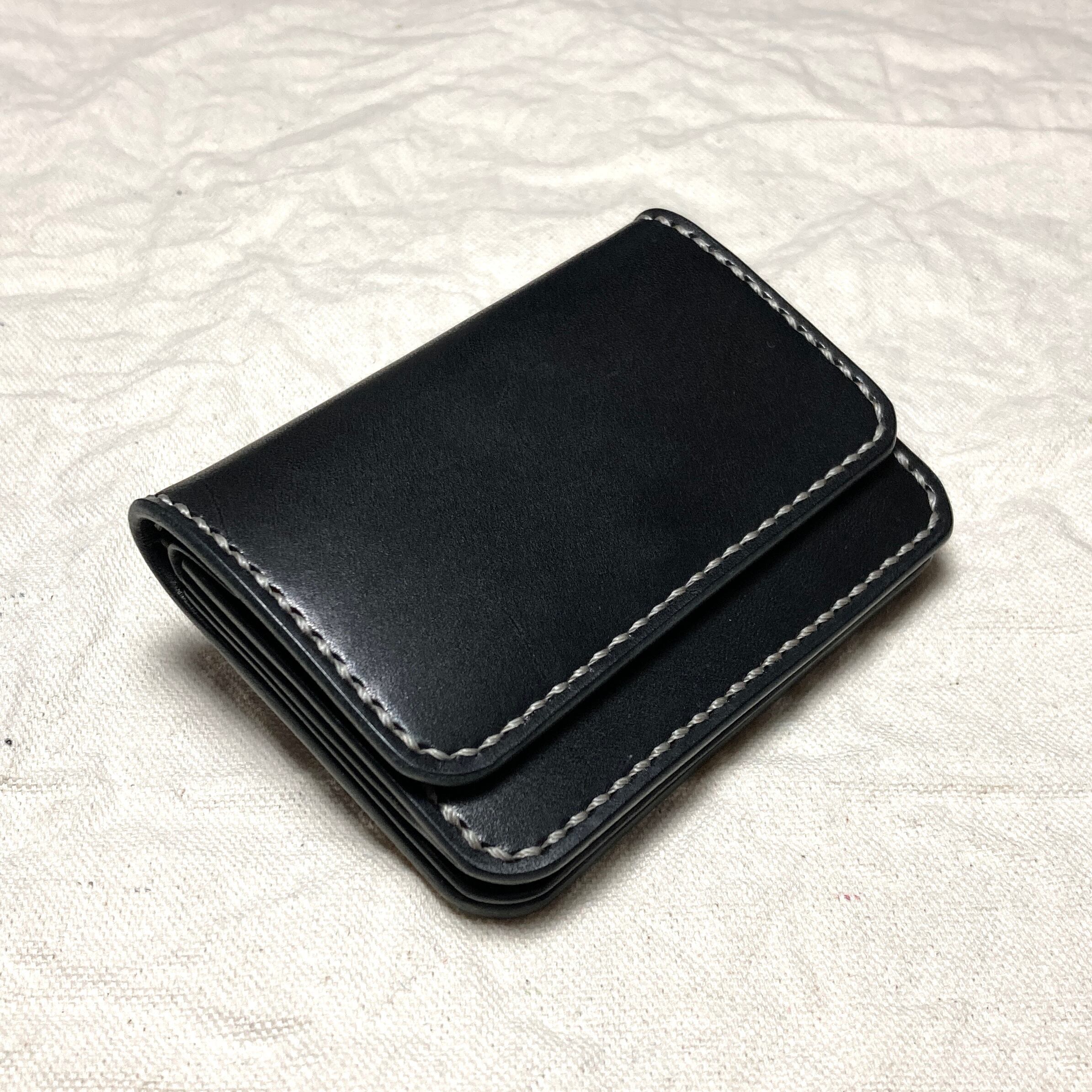 ビジネスに静かな矜持を|栃木レザー ミニ財布 本革 総手縫い コンパクト財布 黒 メンズ レディース 小さい財布